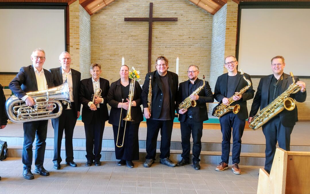 Saxofon og messing kvartet spiller blandet klassisk,- og underholdningsmusik